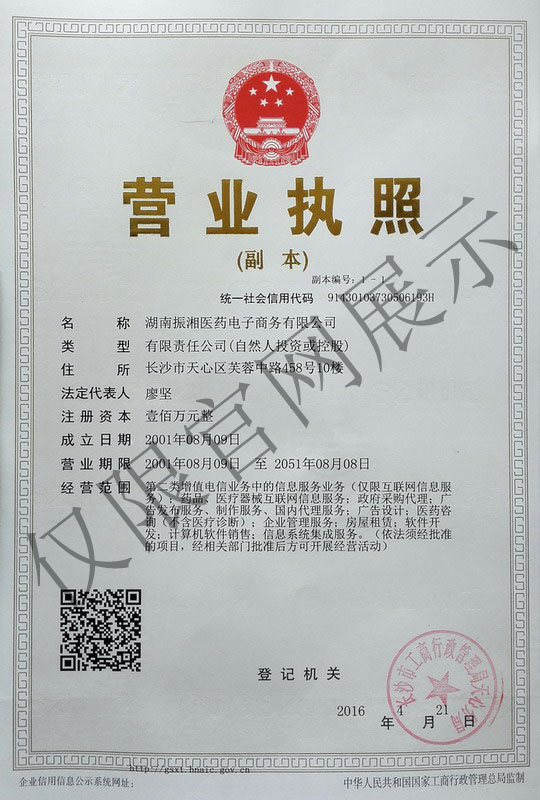 中華人民共和國互聯(lián)網(wǎng)藥品信息服務資格證書 (湘)-經(jīng)營性-2024-0113